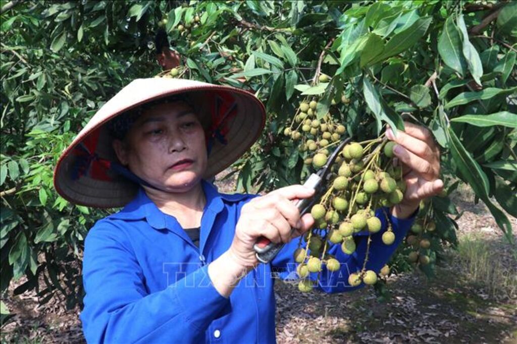 | Người dân xã Tân Hưng, tỉnh Hưng Yên chăm sóc nhãn. |