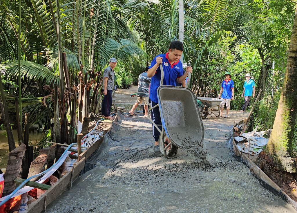 | Sinh viên trường Đại học Hoa sen (Thành phố Hồ Chí Minh) hỗ trợ người dân xã Tân Lợi Thạnh (Giồng Trôm, Bến Tre) làm tuyến đường giao thông nông thôn. |