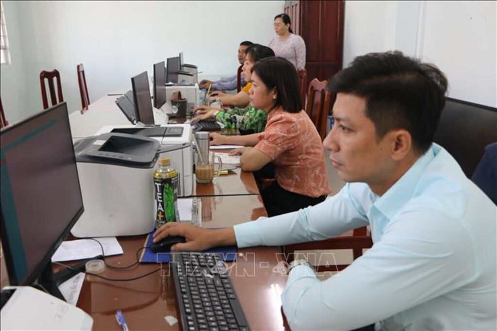 | Cán bộ, nhân viên tại Trung tâm hành chính công xã Vĩnh Công (Tây Ninh) đều được tập huấn và đảm bảo yêu cầu phục vụ nhân dân. |
