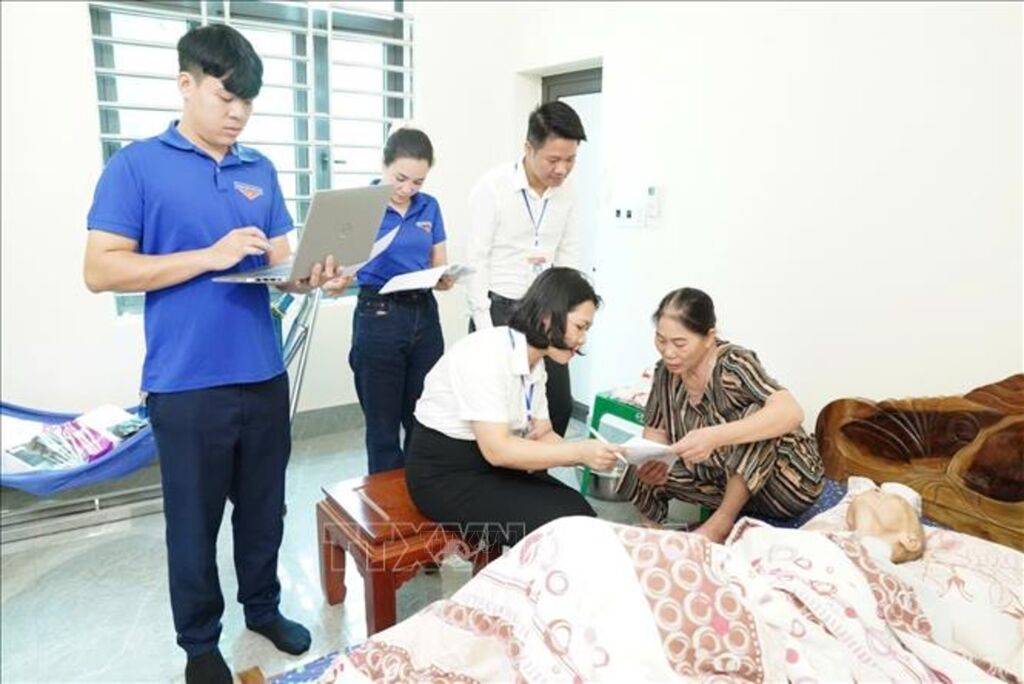 | Cán bộ, công chức, viên chức, thanh niên tình nguyện xã Trường Tân đến tận nhà hỗ trợ giải quyết thủ tục hành chính cho người dân không đủ sức khỏe đến Trung tâm Phục vụ hành chính công. Ảnh: TTXVN phát |