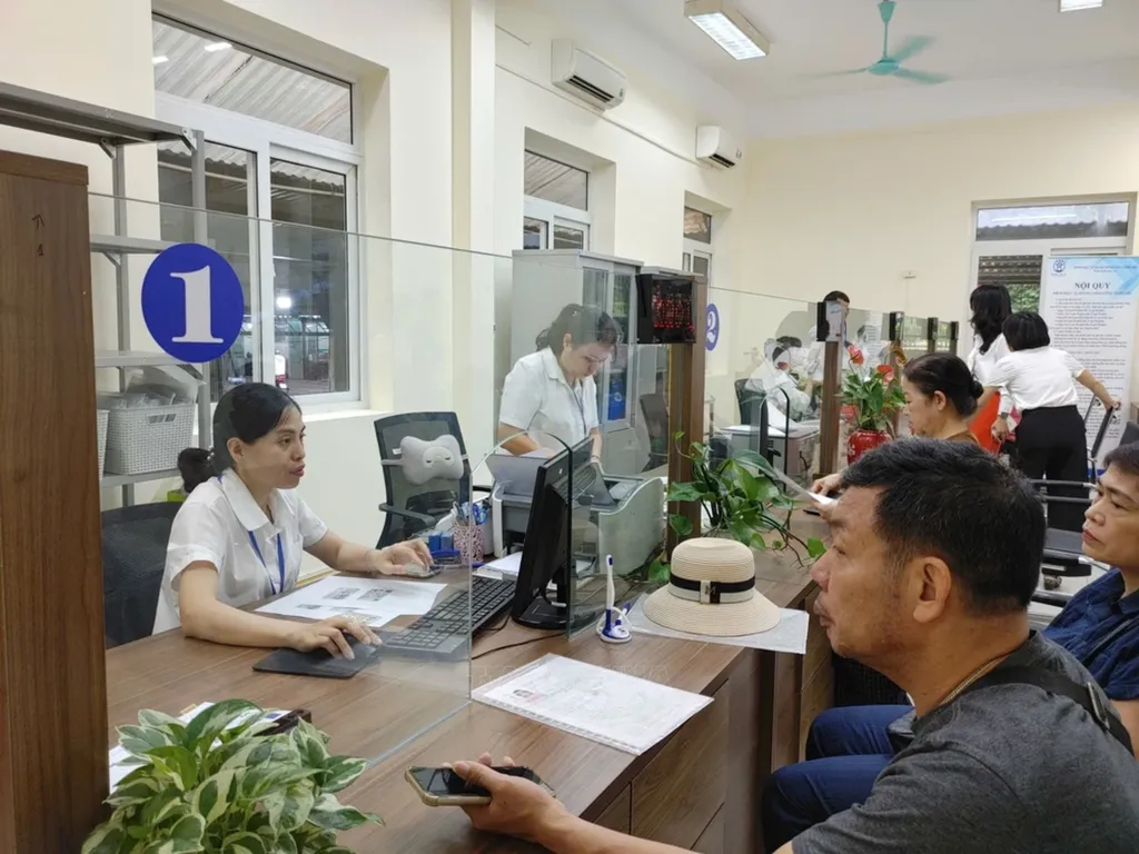 | Không khí làm việc tại Trung tâm Phục vụ hành chính công phường Nghĩa Đô. |