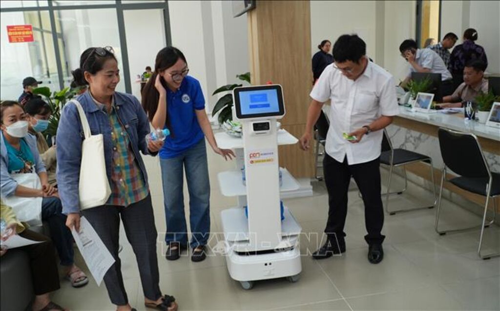 | Trung tâm Hành chính công phường Thủ Đức thử nghiệm 2 robot lễ tân phục vụ người dân. |