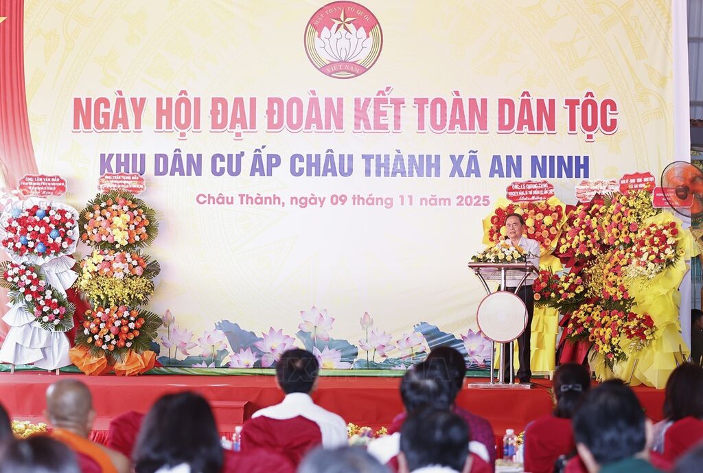 Hòa chung không khí cả nước hướng đến kỷ niệm 95 năm Ngày thành lập Mặt trận Dân tộc thống nhất Việt Nam (18/11/1930 - 18/11/2025), sáng 9/11, Ủy viên Bộ Chính trị, Chủ tịch Quốc hội Trần Thanh Mẫn đã về dự Ngày hội Đại đoàn kết toàn dân tộc ở khu dân cư ấp Châu Thành (xã An Ninh, thành phố Cần Thơ).