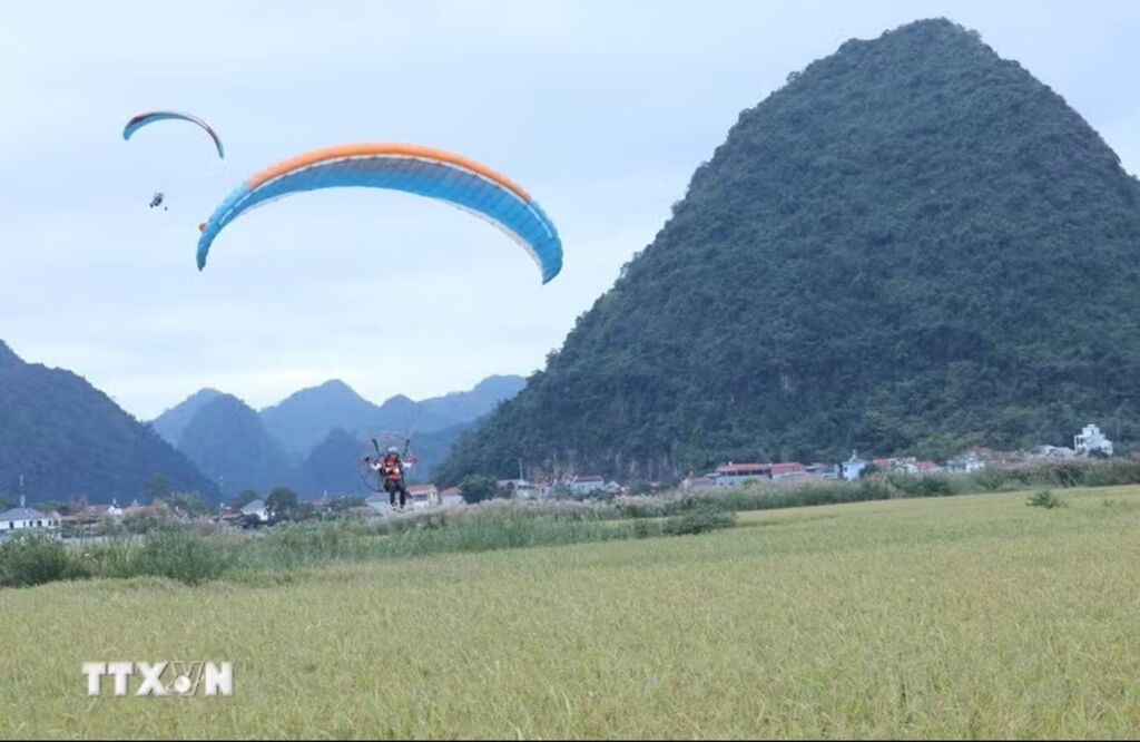 | Trải nghiệm bay dù lượn trên cánh đồng lúa Bắc Sơn. |