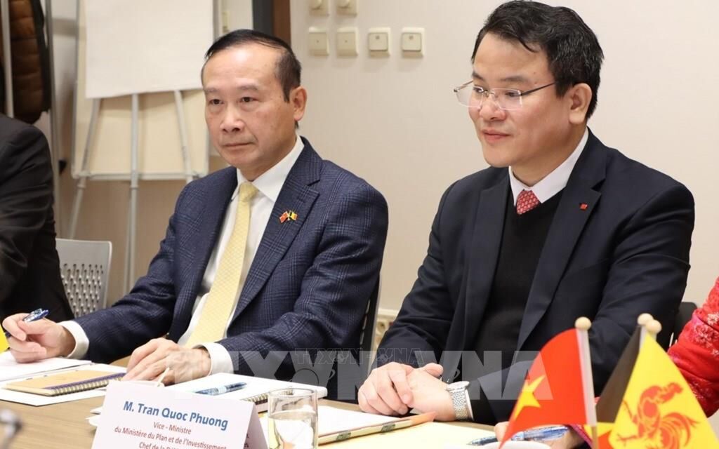 | Thứ trưởng Bộ Kế hoạch và Đầu tư Trần Quốc Phương (phải) và Đại sứ Việt Nam tại Vương quốc Bỉ Nguyễn Văn Thảo. |