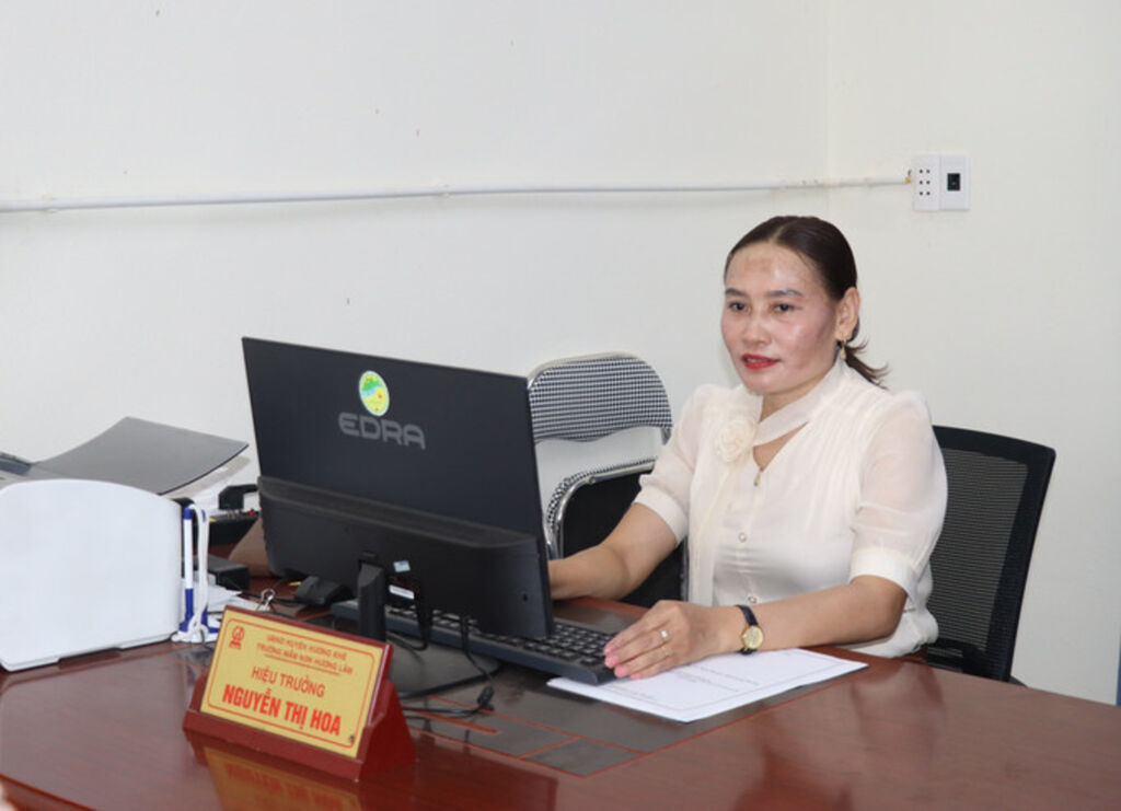 | Cô giáo Nguyễn Thị Hoa, Hiệu trưởng Trường Mầm non Hương Lâm, xã Hương Xuân, tỉnh Hà Tĩnh. |