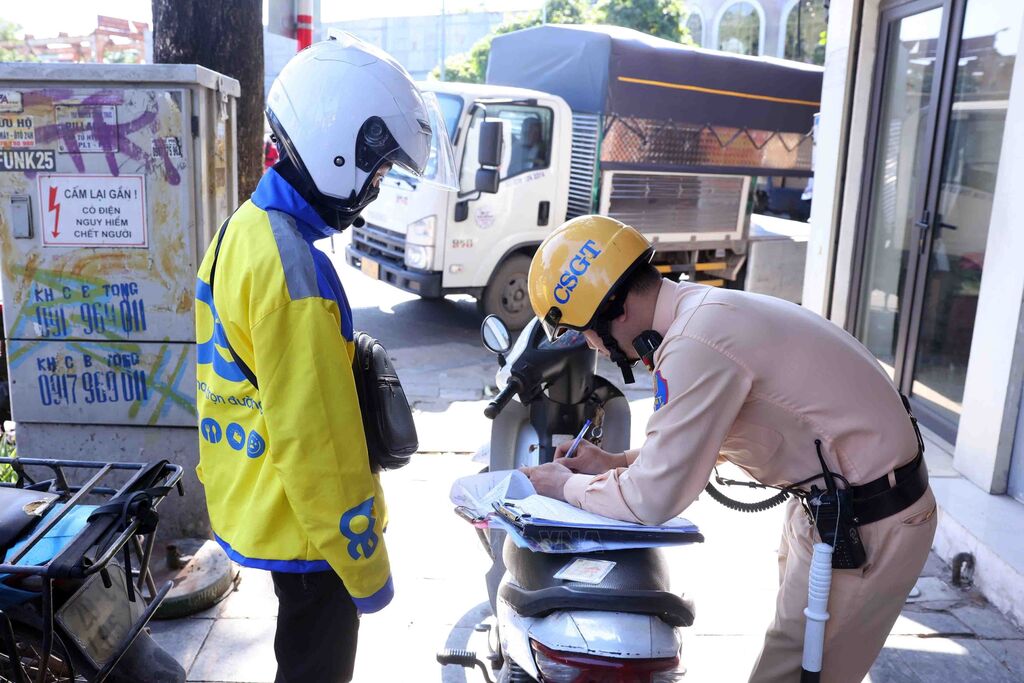 Tình trạng sử dụng điện thoại khi điều khiển phương tiện giao thông vẫn diễn ra phổ biến, tiềm ẩn nguy cơ tai nạn giao thông cao. Ảnh: Phạm Kiên - TTXVNCác trường hợp dán, che biển số khi tham gia giao thông được yêu cầu khôi phục tình trạng ban đầu. Ảnh: Phạm Kiên - TTXVNTheo Nghị định 168/2024/NĐ-CP, hành vi “Điều khiển xe gắn biển số không đúng quy cách; gắn biển số không rõ chữ, số hoặc sử dụng chất liệu khác sơn, dán lên chữ, số của biển số xe; gắn biển số bị bẻ cong, che lấp, làm thay đổi màu sắc, hình dạng, kích thước” sẽ bị phạt tiền từ 4–6 triệu đồng và trừ 6 điểm giấy phép lái xe. Ảnh: Phạm Kiên - TTXVNMột tài xế công nghệ cố tình dán, che biển số xe đã bị tổ công tác thuộc đội CSGT số 1 phát hiện và lập biên bản xử lý theo quy định của pháp luật. Ảnh: Phạm Kiên - TTXVNMột trường hợp dán, che biển số xe đã bị tổ công tác thuộc đội CSGT số 1 phát hiện và lập biên bản xử lý theo quy định của pháp luật. Ảnh: Phạm Kiên - TTXVNChỉ sau khi lập chốt kiểm soát ít phút, rất nhiều trường hợp vi phạm dán, che biển số xe hay sử dụng điện thoại khi điều khiển phương tiện giao thông đã bị lực lượng chức năng phát hiện, lập biên bản xử lý theo quy định. Ảnh: Phạm Kiên - TTXVNNhững trường hợp vi phạm lỗi dán, che biển kiểm soát chủ yếu là tài xế xe ôm công nghệ và người giao hàng để đối phó với lực lượng chức năng. Ảnh: Phạm Kiên - TTXVNĐối với những trường hợp dán, che biển số xe không đủ giáy tờ (đăng ký xe, bằng lái xe) sẽ bị lực lượng chức năng lập biên bản xử phạt và tạm giữ phương tiện. Ảnh: Phạm Kiên - TTXVNTình trạng sử dụng điện thoại khi điều khiển phương tiện giao thông vẫn diễn ra phổ biến, tiềm ẩn nguy cơ tai nạn giao thông cao. Ảnh: Phạm Kiên - TTXVN
