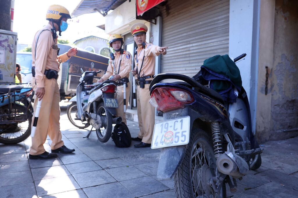 Thời gian qua, tình trạng sử dụng điện thoại khi điều khiển phương tiện giao thông hay lỗi cố tình dán, che biển kiểm soát để đối phó với lực lượng chức năng vẫn diễn ra phổ biến trên địa bàn Thủ đô. Trước tình hình đó, sáng 13/11/2025, lực lượng Cảnh sát giao thông, Công an thành phố Hà Nội đã đồng loạt triển khai các tổ công tác trên nhiều tuyến phố nhằm tăng cường kiểm tra, phát hiện và xử lý nghiêm các trường hợp vi phạm những lỗi này. Ảnh: Phạm Kiên – TTXVN