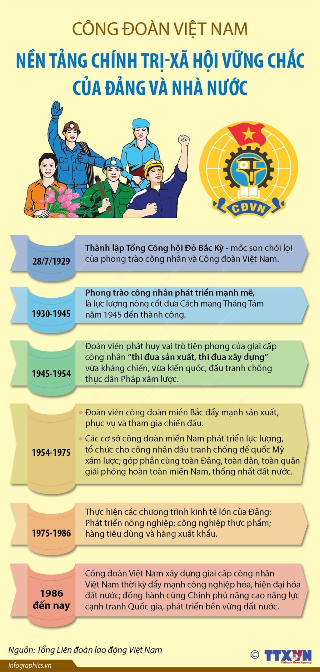 95 năm trước, ngày 28/7/1929, Tổng Công hội đỏ Bắc Kỳ, tiền thân của tổ chức Công đoàn Việt Nam chính thức được thành lập, đánh dấu bước ngoặt lớn, khẳng định sự lớn mạnh của phong trào công nhân và hoạt động công đoàn cách mạng Việt Nam; là hạt nhân vận động, tập hợp giai cấp công nhân đi dưới ngọn cờ vẻ vang của Đảng. Tổ chức Công đoàn Việt Nam đã có những đóng góp quan trọng vào sự nghiệp đấu tranh giành độc lập dân tộc, thống nhất đất nước cũng như sự nghiệp công nghiệp hóa, hiện đại hóa ngày nay.