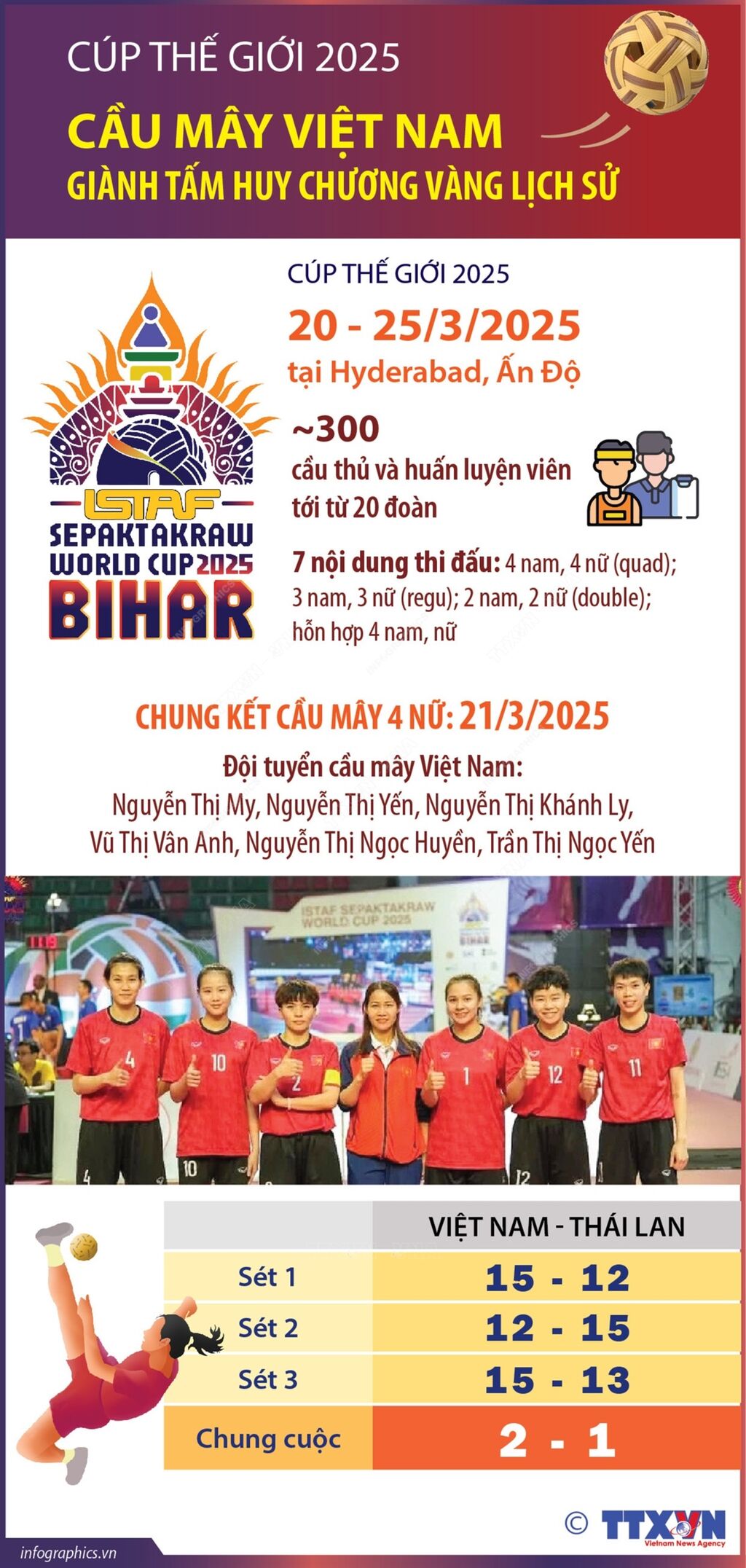 | Cúp thế giới 2025: Cầu mây Việt Nam giành tấm Huy chương Vàng lịch sử |