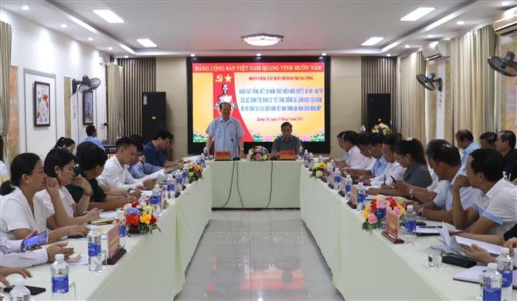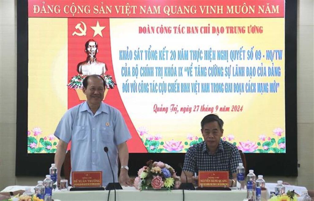 Ngày 27/9, Đoàn công tác Ban Chỉ đạo Trung ương đã có buổi làm việc với tỉnh Quảng Trị để khảo sát tình hình tổng kết 20 năm thực hiện Nghị quyết số 09-NQ/TW của Bộ Chính trị Khóa IX “Về tăng cường sự lãnh đạo của Đảng đối với công tác cựu chiến binh Việt Nam trong giai đoạn cách mạng mới”.