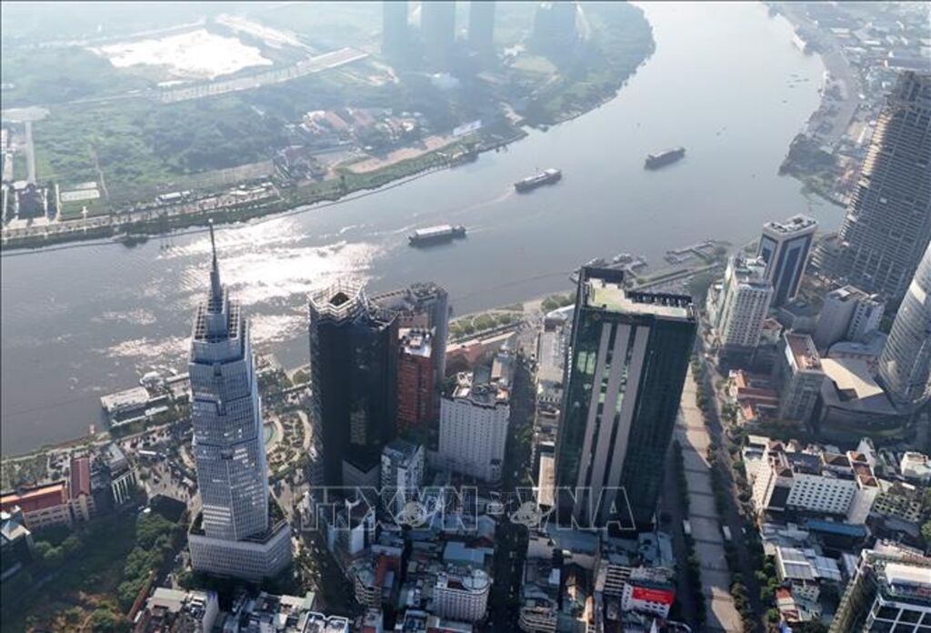 | Các tòa nhà tài chính ở khu vực trung tâm Thành phố Hồ Chí Minh bên sông Sài Gòn, đối diện bán đảo Thủ Thiêm, phường An Khánh. |