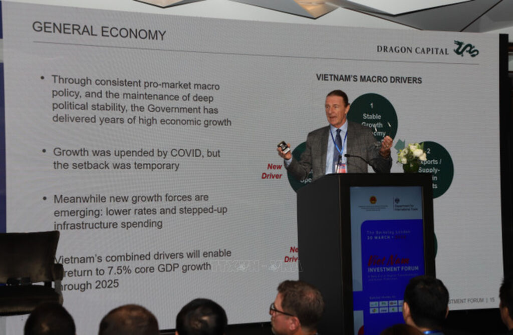 | Ông Dominic Scriven cập nhật tình hình kinh tế Việt Nam tại Diễn đàn Đầu tư Việt Nam ở London vào cuối tháng 3/2022. |