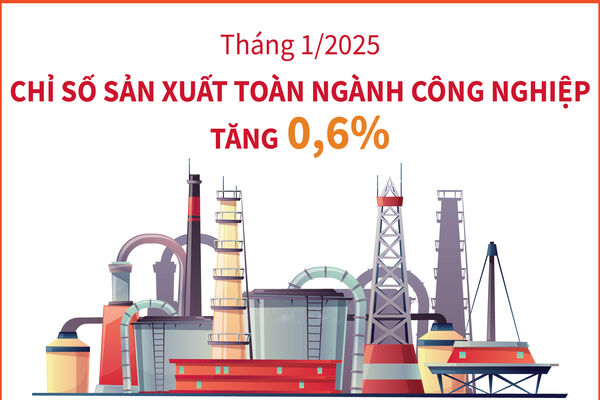Tết Nguyên đán Ất Tỵ diễn ra trong tháng 1/2025 nên số ngày làm việc ít hơn so với tháng trước và cùng kỳ năm trước. Chỉ số sản xuất công nghiệp tháng 1/2025 ước tính tăng 0,6% so với cùng kỳ năm 2024, trong đó ngành công nghiệp chế biến, chế tạo tăng 1,6%; sản xuất và phân phối điện tăng 0,4%; cung cấp nước, hoạt động quản lý và xử lý rác thải, nước thải tăng 9,2% và riêng ngành khai khoáng giảm 10,4%.