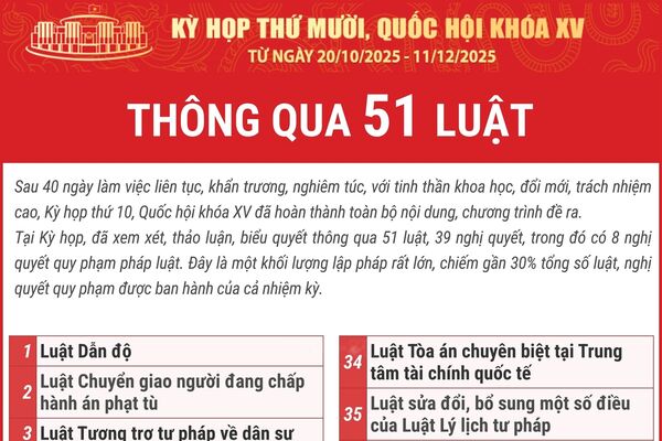 Kỳ họp thứ 10, Quốc hội khóa XV thông qua 51 luật