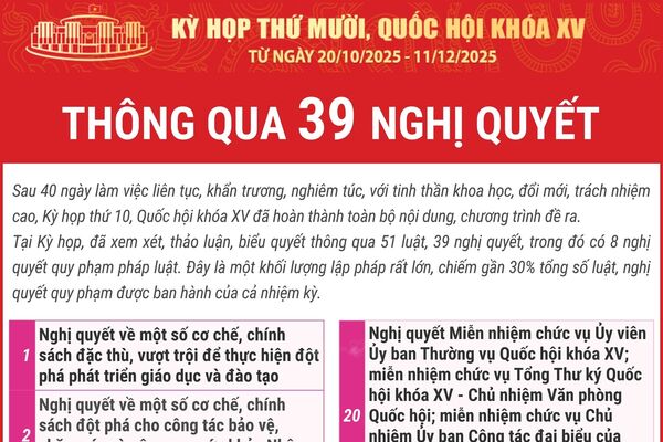 Kỳ họp thứ 10, Quốc hội khóa XV thông qua 39 nghị quyết