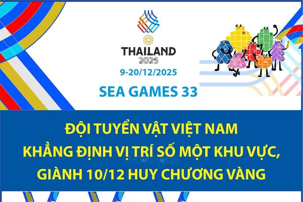 SEA Games 33: Đội tuyển Vật Việt Nam khẳng định vị trí số một khu vực, giành 10/12 Huy chương Vàng