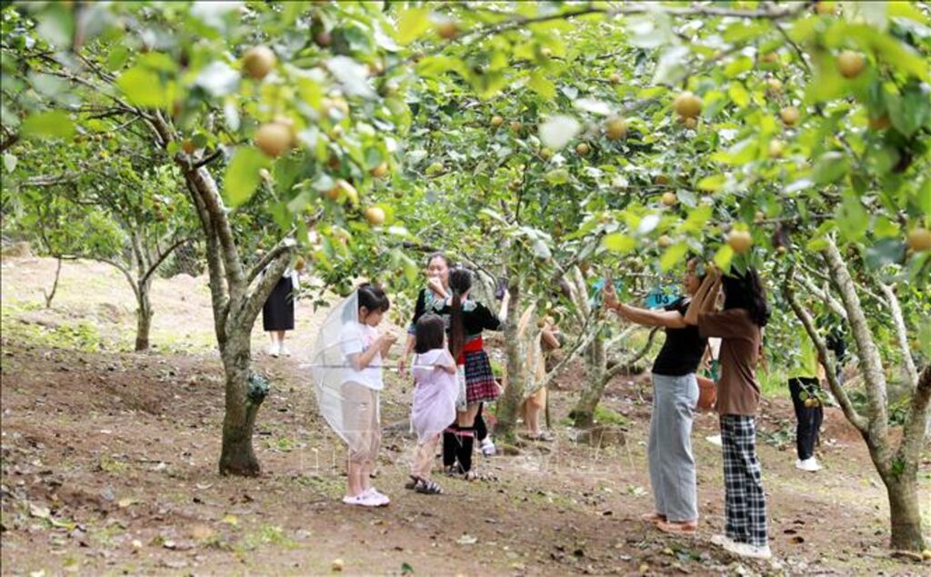 | Trải nghiệm, thưởng thức hái lê tại vườn thu hút đông đảo người dân và du khách |