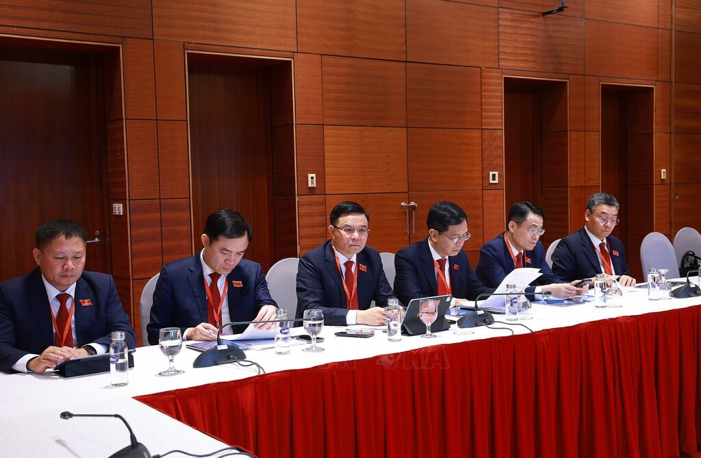| Đồng chí Phạm Minh Chính, Bí thư Đảng ủy, Thủ tướng Chính phủ phát biểu thảo luận tại tổ. |