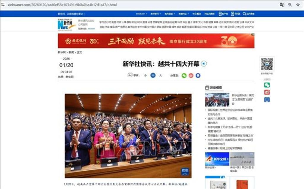 | Tân Hoa xã đưa tin về Lễ khai mạc Đại hội XIV của Đảng Cộng sản Việt Nam. |