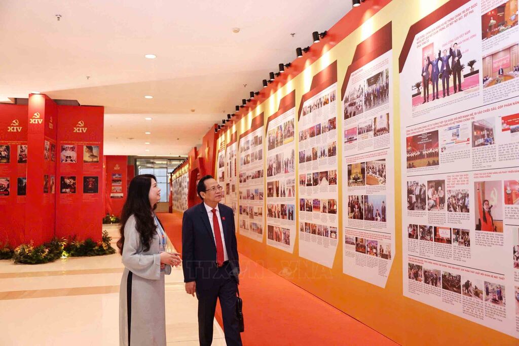 | Trưng bày ảnh “Dưới cờ Đảng - Đất nước tiến vào Kỷ nguyên mới” thu hút sự quan tâm của các đại biểu dự Đại hội XIV |
