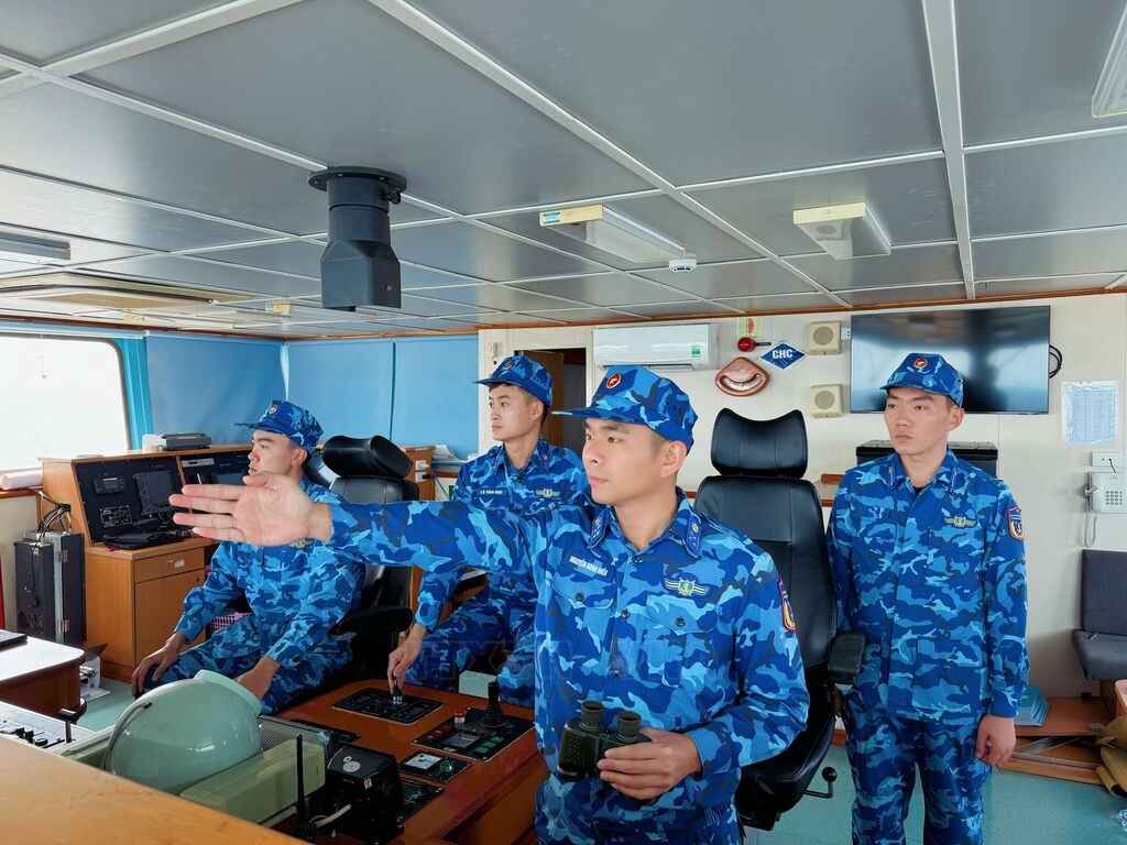| Cán bộ, chiến sĩ tàu CSB 7011 (Hải đội 322, Hải đoàn 32) trực quan sát trên biển. |