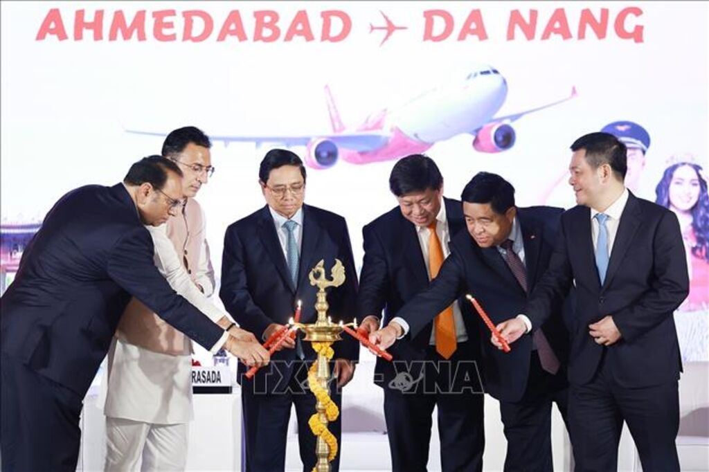 | Thủ tướng Phạm Minh Chính thực hiện lễ thắp đèn truyền thống công bố đường bay mới Đà Nẵng – Ahmedabad của hãng hàng không VietjetAir. |
