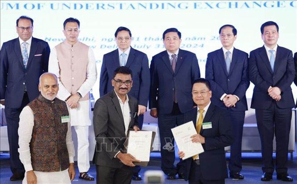 | Thủ tướng Phạm Minh Chính chứng kiến trao biên bản hợp tác giữa doanh nghiệp hai nước Việt Nam - Ấn Độ. |