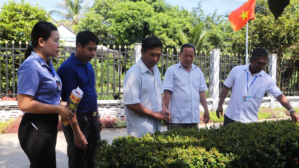 | Người dân tham gia chăm sóc cây xanh thực hiện mô hình "3 xanh, 4 có, 5 không" trên địa bàn xã Hòa Mỹ, huyện Phụng Hiệp. |