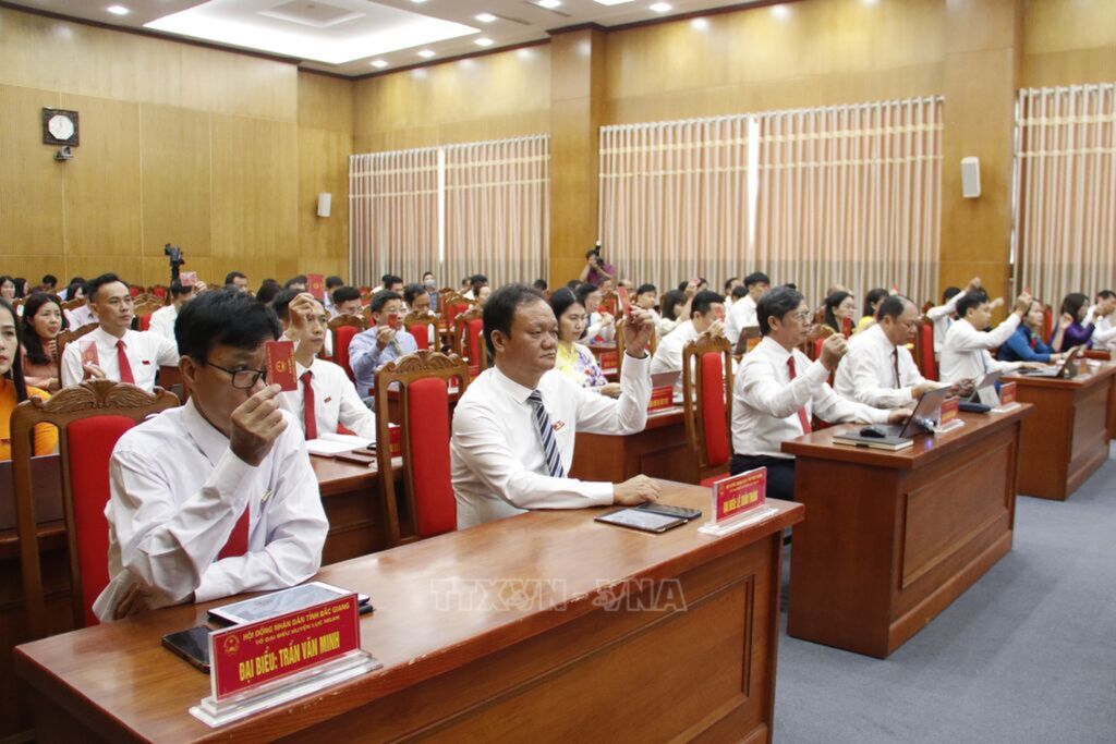 | Đại biểu biểu quyết thông qua nghị quyết về công tác cán bộ. |