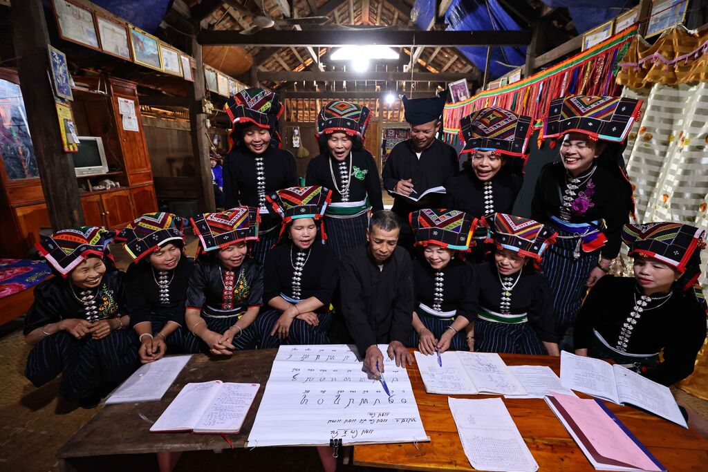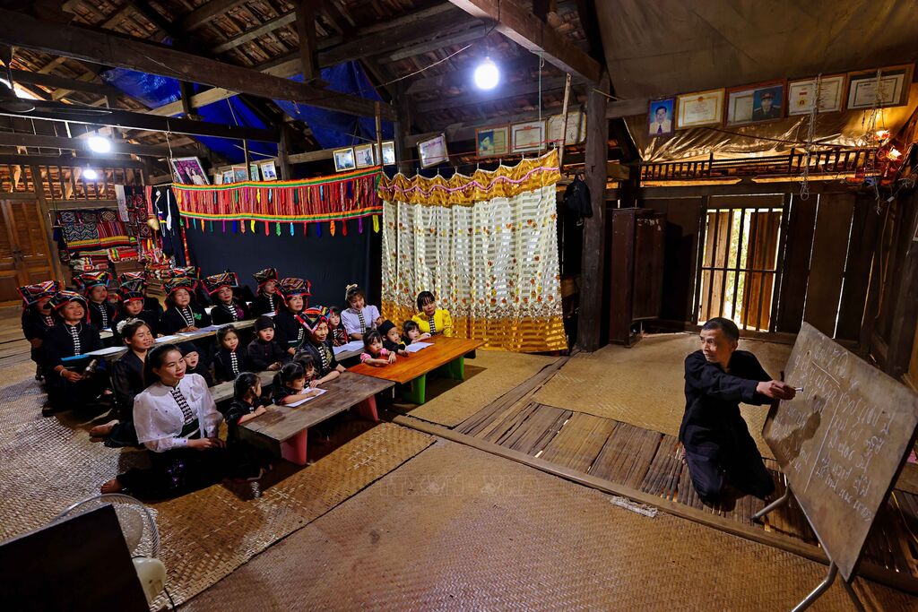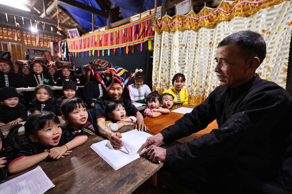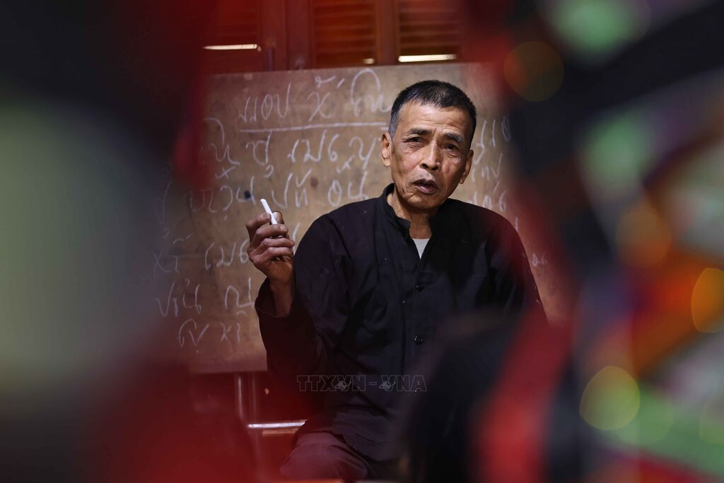 Với 75 năm tuổi đời, 46 năm tuổi Đảng, ông Quàng Văn Khóa, dân tộc Thái, ở bản Khoa, xã Mường Khoa, huyện Bắc Yên, tỉnh Sơn La nhiều năm qua đã dành hết tâm huyết để dạy chữ và tiếng Thái cho bà con dân bản nhằm bảo tồn và giữ gìn tiếng nói và chữ viết riêng mà nhiều dân tộc thiểu số khác ở Việt Nam không có. Ông đã tổ chức các lớp dạy chữ, dạy nói cho tất cả mọi người từ già đến trẻ với tâm nguyện để chữ viết, tiếng nói của dân tộc mình được bảo tồn, phát huy. Ông được xem như người “thầy” của đồng bào dân tộc Thái ở xã Mường Khoa. Ảnh: Minh Đức – TTXVN