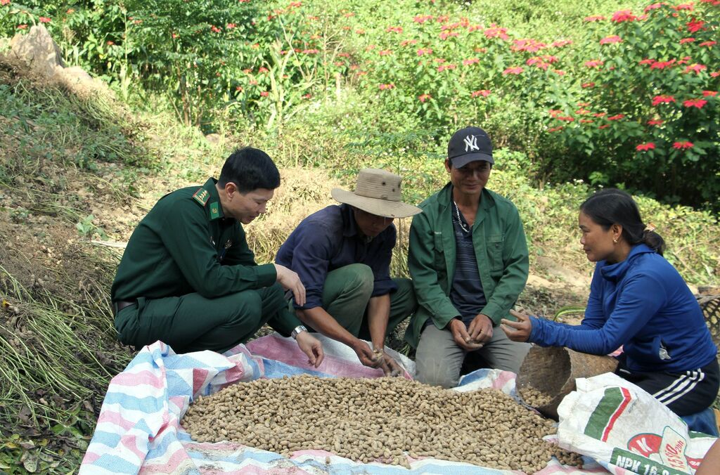 | Thượng tá Trần Xuân Hiểu, Phó Bí thư tăng cường xã Nậm Cắn, huyện Kỳ Sơn, tỉnh Nghệ An hướng dẫn người dân phát triển kinh tế. |