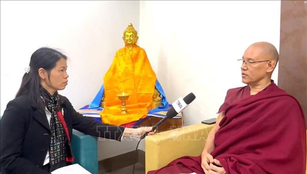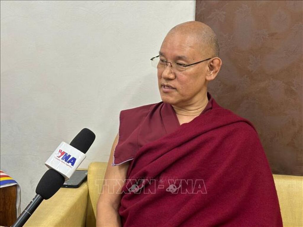 | Hòa thượng Shartse Khensur Rinpoche Jangchup Choeden, Tổng thư ký Liên minh Phật giáo Quốc tế (IBC) trả lời phỏng vấn phóng viên TTXVN. |