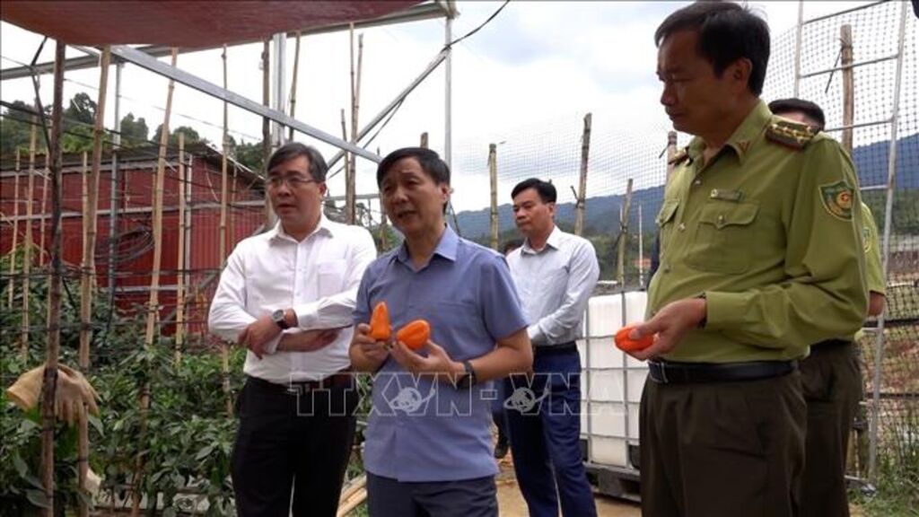 | Lãnh đạo Sở Nông nghiệp và Phát triển nông thôn tỉnh Yên Bái thăm mô hình trồng ớt Palermo ở xã Nậm Khắt, huyện Mù Cang Chải. |