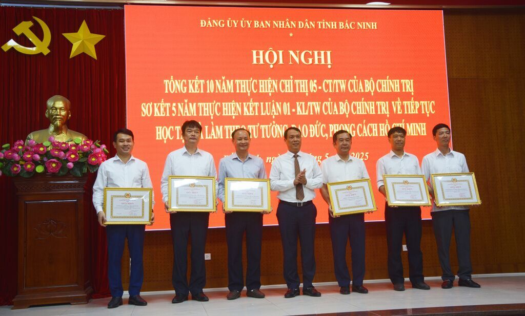 | Lãnh đạo Đảng ủy UBND tỉnh Bắc Ninh trao tặng Giấy khen cho các tập thể có thành tích xuất sắc trong học tập và làm theo tư tưởng, đạo đức, phong cách Hồ Chí Minh giai đoạn 2021-2025. |