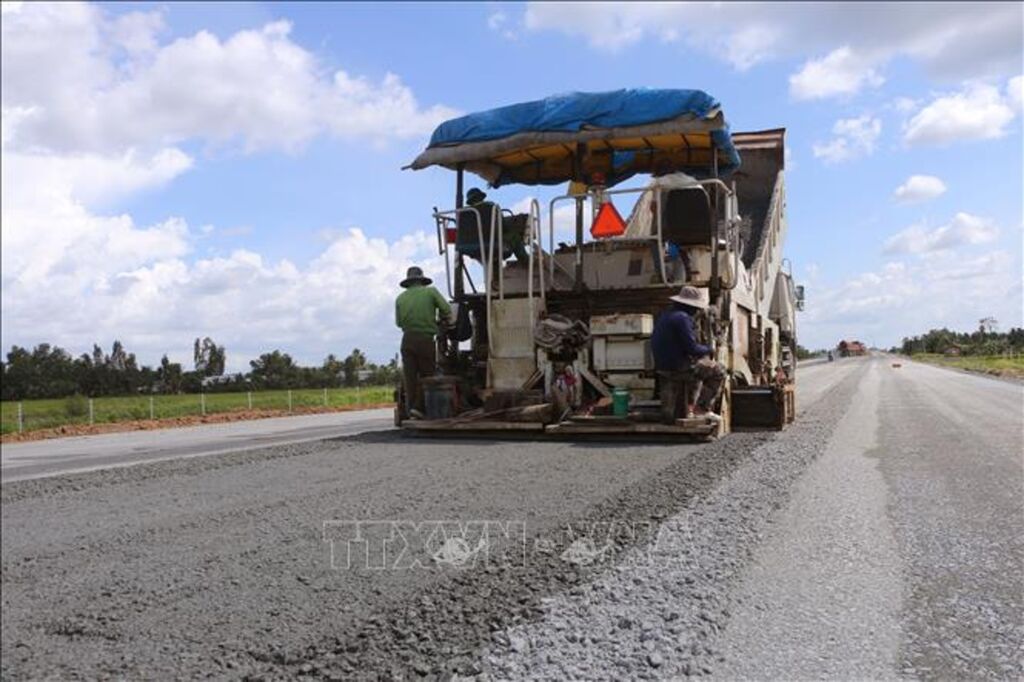 | Thi công công trình giao thông trên địa bàn thành phố Cần Thơ. Ảnh: Tuấn Phi/TTXVN |