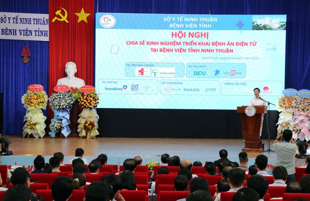 Sáng 14/6, tại Ninh Thuận, Cục Khoa học công nghệ và Đào tạo, Trung tâm Thông tin y tế quốc gia (Bộ Y tế) phối hợp với Ban Giám đốc Bệnh viện Đa khoa tỉnh Ninh Thuận tổ chức Hội nghị chia sẻ kinh nghiệm về bệnh án điện tử tại bệnh viện. Hội nghị có sự tham dự của hơn 300 đại biểu gồm đại diện Bộ Y tế, lãnh đạo Bệnh viện Nhi Đồng 2 - Thành phố Hồ Chí Minh, Bệnh viện Đa khoa các tỉnh khu vực miền Trung, Tây Nguyên, Nam Trung bộ…