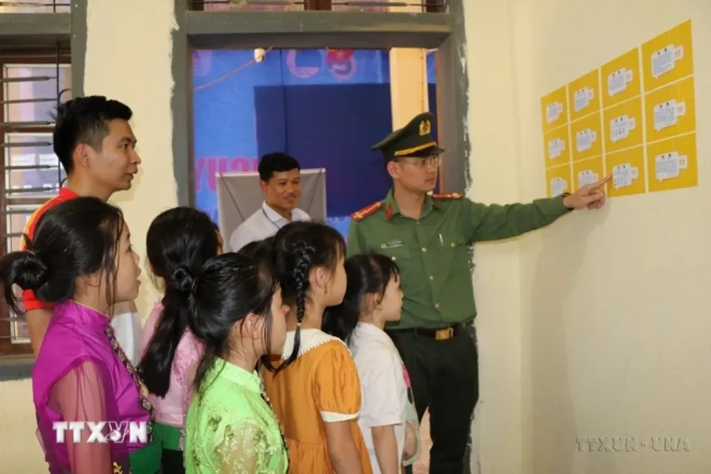 | Công an tỉnh Sơn La tuyên truyền pháp luật về ma túy và phòng chống buôn bán người cho học sinh thông qua đồ họa. |