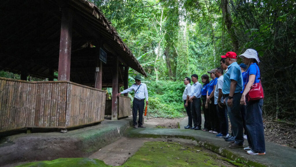 Cách đó không xa, Lê Thảo Nguyên, đoàn viên trẻ của tỉnh Tây Ninh, lau vội giọt mồ hôi sau quãng đường đi bộ dài, ánh mắt ánh lên niềm xúc động: “Em sinh ra ở Tây Ninh, nhưng đến khi tận mắt thấy những căn hầm, con suối, lối mòn này, em mới hiểu vì sao nơi đây được gọi là trái tim của cách mạng miền Nam. Cảm giác tự hào và biết ơn đến rất tự nhiên”.