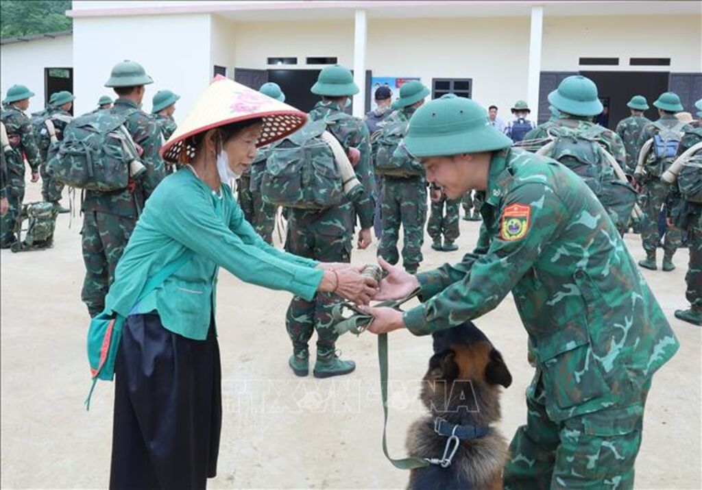 | Người dân thôn Làng Nủ tặng những chiếc bánh chưng tự gói cho chiến sĩ bộ độ quân khu 2 trước khi về đơn vị. Ảnh: TTXVN phát |