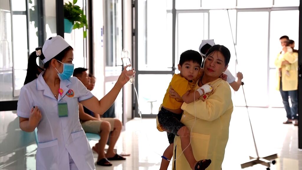 | Đội ngũ nhân viên y tế Bệnh viện Quân y 15 hỗ trợ bệnh nhi. |