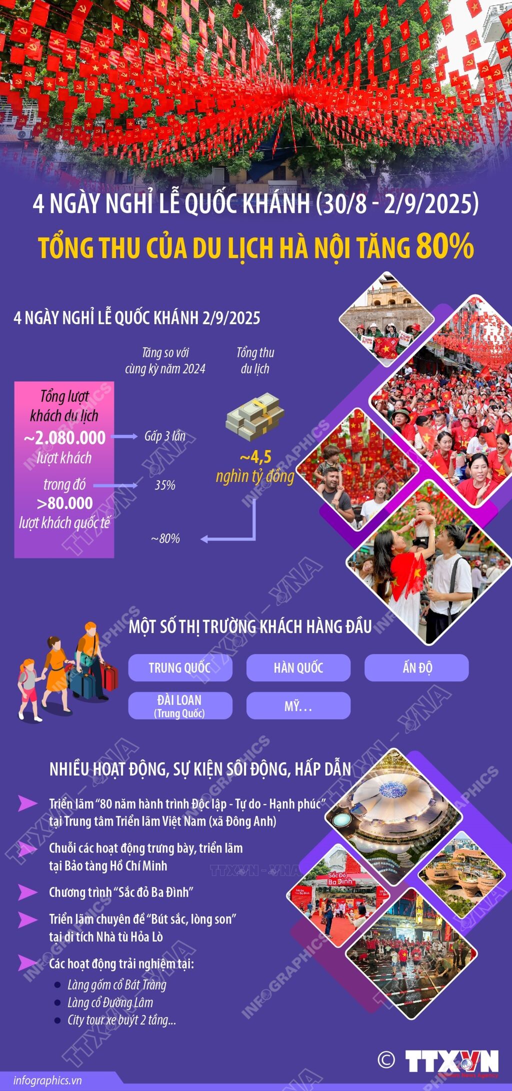 Sau 80 năm Cách mạng tháng Tám thành công và Quốc khánh 2/9, từ một nền kinh tế dựa vào viện trợ, bị bao vây, cấm vận, Việt Nam đã trở thành một nền kinh tế mở, năng động, sáng tạo, thuộc nhóm các nước tăng trưởng cao trong khu vực, thế giới, thuộc nhóm 15 quốc gia thu hút đầu tư nước ngoài hàng đầu và nhóm 20 quốc gia có quy mô thương mại lớn nhất toàn cầu.