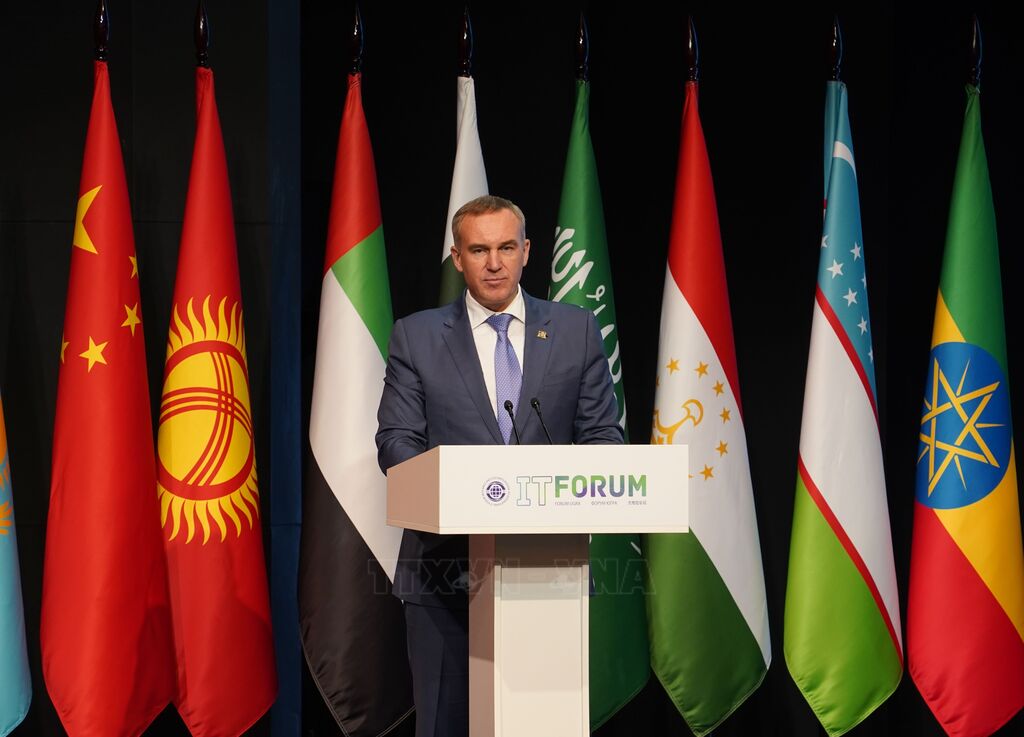 | Đại diện toàn quyền của Tổng thống LB Nga tại Khu vực Liên bang Ural, ông Vladimir Yakushev phát biểu tại Diễn đàn. |