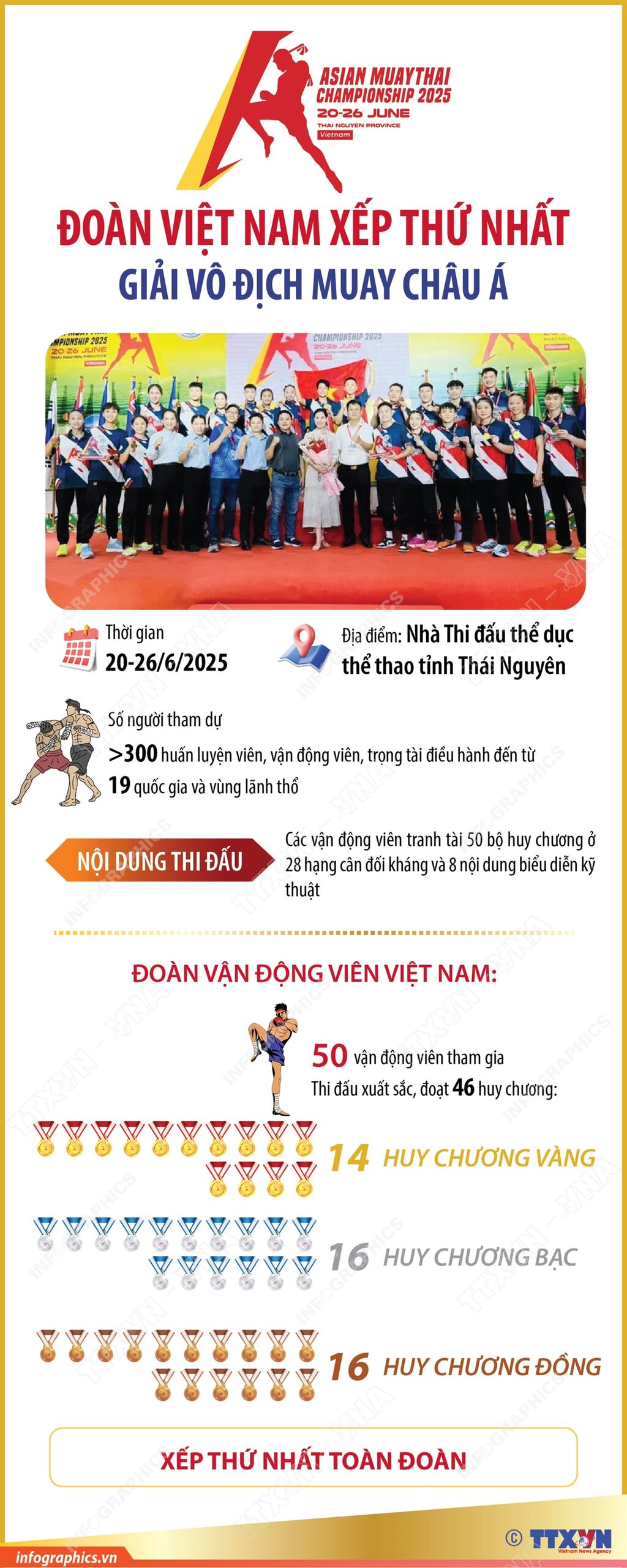 | Đoàn Việt Nam xếp thứ nhất Giải vô địch Muay châu Á |