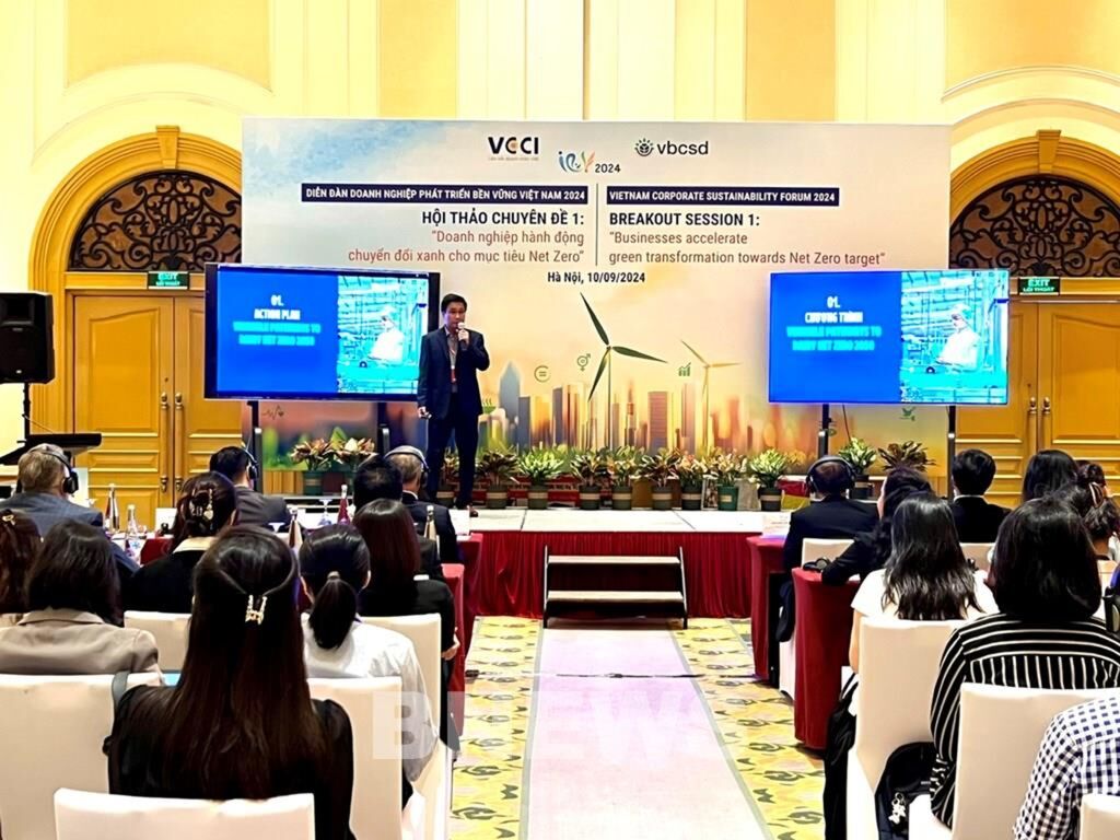 Tại sự kiện, chia sẻ về nỗ lực chuyển đổi xanh trong hoạt động sản xuất của doanh nghiệp, ông Lê Hoàng Minh, Giám đốc điều hành - Trưởng dự án Net Zero tại Công ty cổ phần Sữa Việt Nam (Vinamilk) cho hay, trong gần 50 năm hình thành và phát triển đến nay, Vinamilk đã có 16 nhà máy, 15 trang trại, 13 công ty con, công ty liên kết trong và ngoài nước cùng 10.000 người lao động. Vinamilk đề ra lộ trình tiến đến Net Zero 2050 là tới năm 2027 sẽ giảm 15% khí phát thải nhà kính; đến năm 2035 giảm 55% và đến năm 2050 là đạt mục tiêu Net Zero. Với 8 định hướng chiến lược, Vinamilk đang nỗ lực sử dụng nguồn nguyên liệu bền vững, sử dụng các nguồn năng lượng xanh - sạch và tái tạo, sử dụng bao bì phát thải thấp, phát triển các sản phẩm carbon thấp, sử dụng logistics thân thiện với môi trường, tổ chức các bể hấp thụ carbon và loại bỏ khí nhà kính, cam kết tuân thủ và áp dụng các tiêu chuẩn quốc tế về khí nhà kính, tạo thương hiệu bền vững có chứng nhận nhãn xanh hay sản phẩm xanh. Hiện tại Vinamilk đã có 3 trang trại và nhà máy sữa đầu tiên đạt chứng nhận trung hòa carbon theo tiêu chuẩn PAS 2060:2014 là Nhà máy sữa Nghệ An, Trang trại bò sữa Nghệ An và Nhà máy nước giải khát Việt Nam.