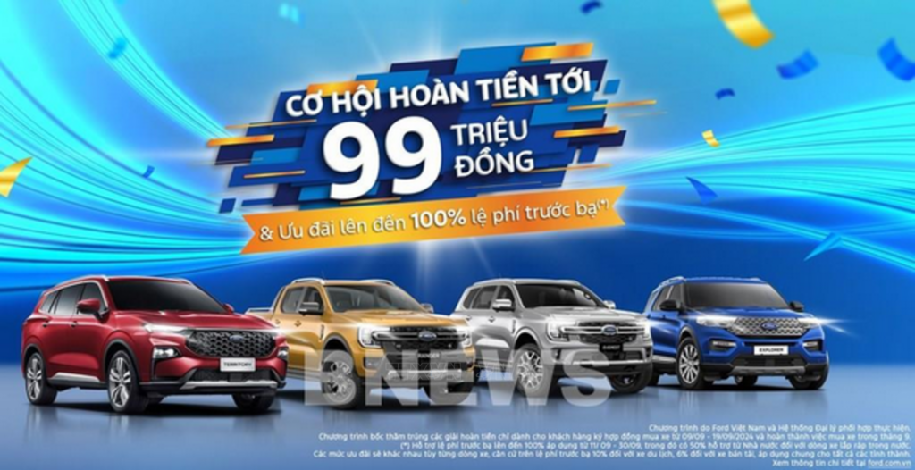 | Trong tháng 9, nhiều doanh nghiệp hỗ trợ khách hàng bằng việc ưu đãi đến 100% lệ phí trước bạ để kích cầu doanh số, trong đó có Ford Việt Nam. |