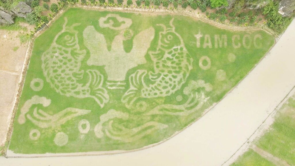 Trên cánh đồng lúa vàng Tam Cốc trải dài theo dòng sông Ngô Đồng tại Khu du lịch Tam Cốc - Bích Động (thành phố Hoa Lư, tỉnh Ninh Bình), năm nay, người dân đã tạo dựng bức tranh bằng lúa "Cá vượt vũ môn" với diện tích 10.000 m2 nhằm gửi gắm những khát vọng đẹp đẽ, tinh thần vươn lên để đạt tới những thành tựu rực rỡ. Đây hứa hẹn sẽ là sản phẩm du lịch độc đáo, chào đón du khách khi về Tuần lễ du lịch Ninh Bình năm 2025 sắp được tổ chức.