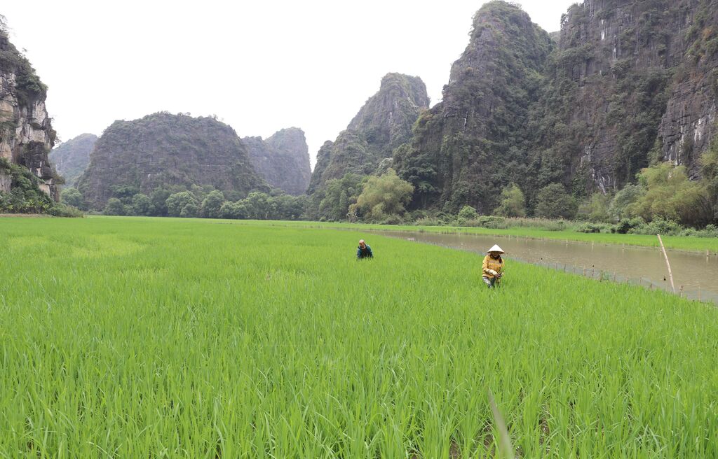 | Người dân xã Ninh Hải, thành phố Hoa Lư, tích cực chăm sóc, phòng trừ sâu bệnh, đảm bảo lúa chín đúng thời điểm đón du khách khi về Tuần lễ du lịch Ninh Bình năm 2025. |
