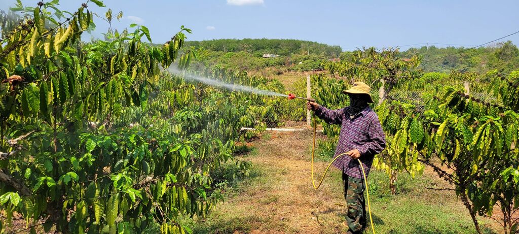 | Anh Rơ Mah Thúy, một hộ dân người Campuchia khá giả ở làng Triêl khi có đến 7 ha điều, 6 sào cà phê và 4 sào lúa. |
