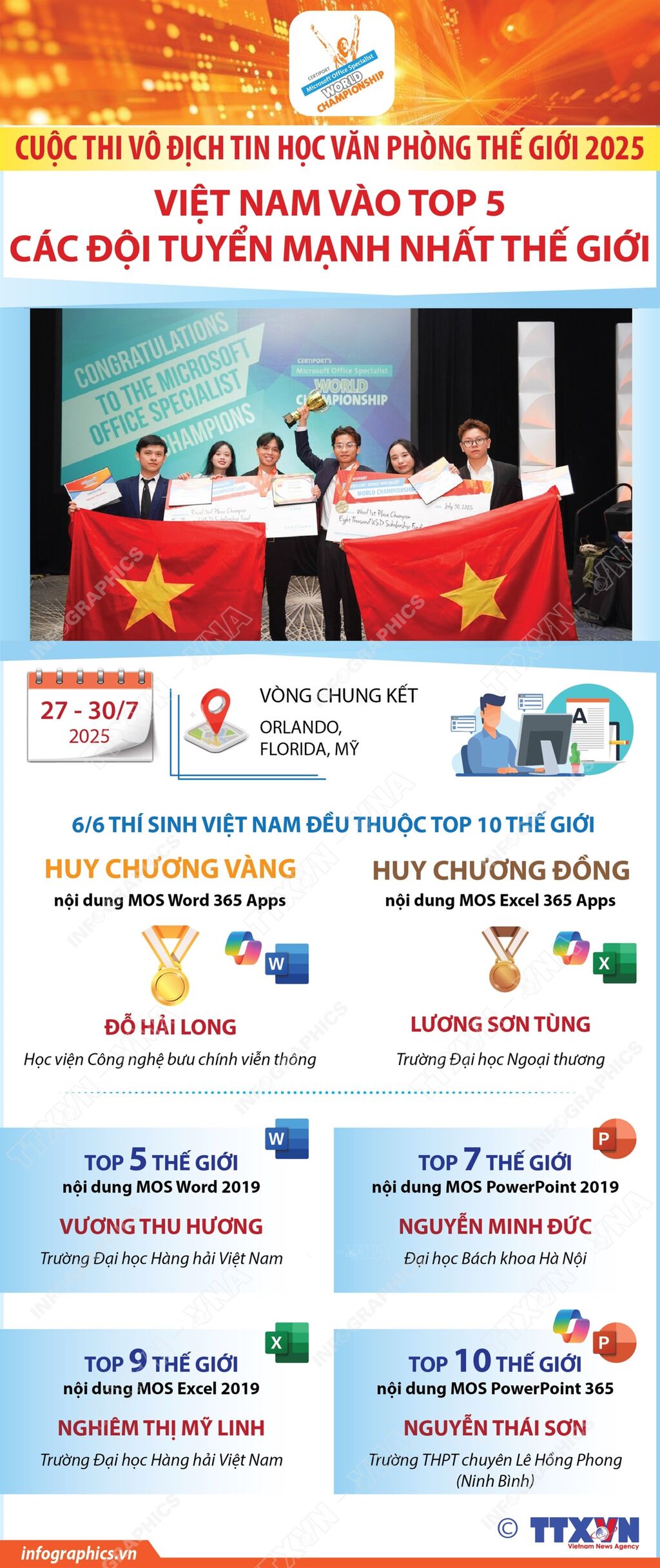 | Đội tuyển Việt Nam giành Huy chương Vàng cuộc thi tin học văn phòng thế giới |